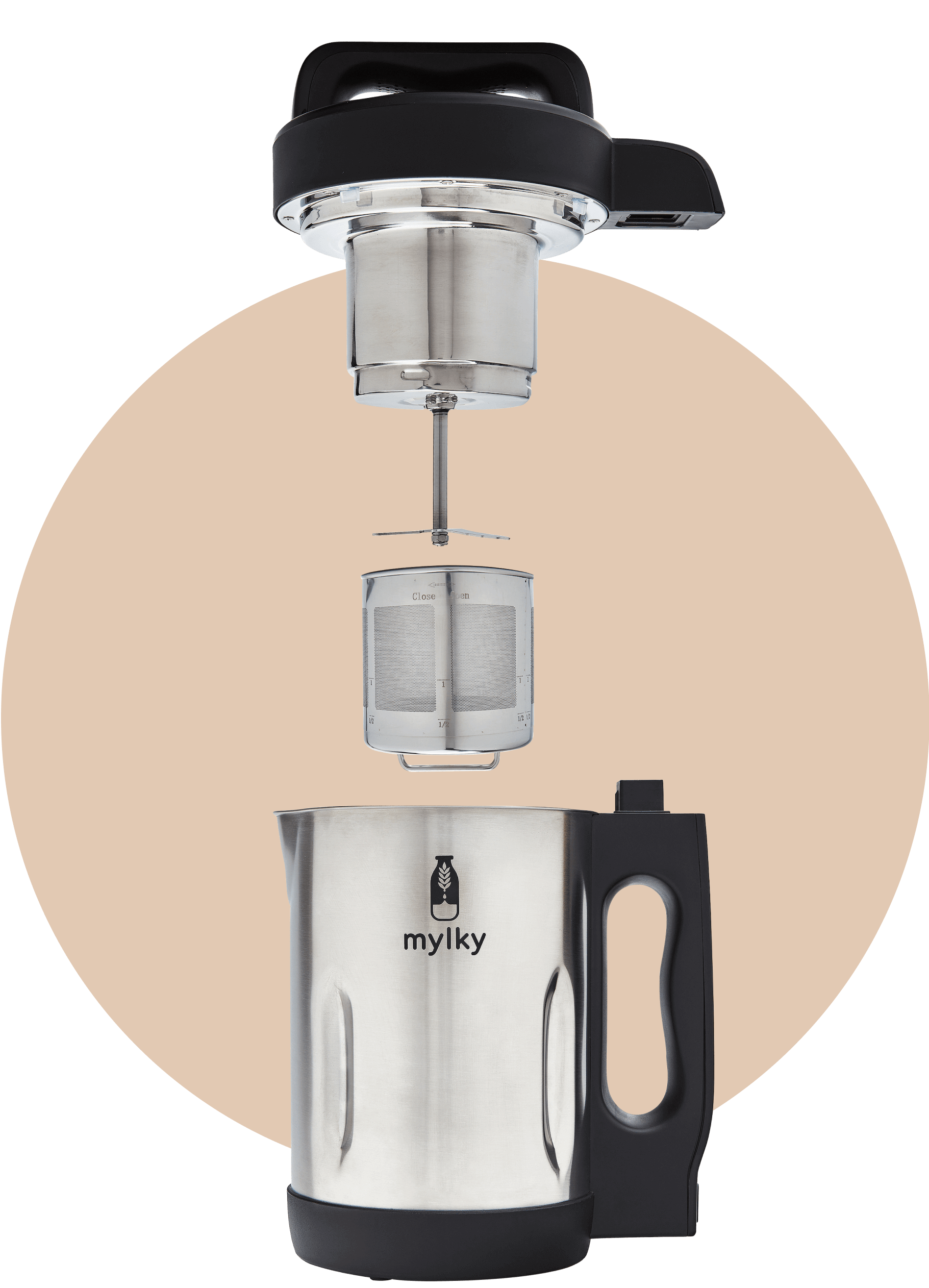 La tapa de Mylky incorpora unos botones intuitivos para iniciar el proceso de trituración y activar la función de autolimpieza. Al pulsar el botón «start», ¡las chuchillas de la batidora se activan y mezclan los ingredientes hasta obtener leche fresca!